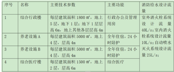 各建筑物功能和技术参数表