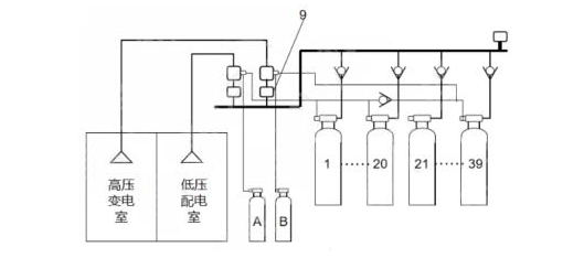 4.示意图中9所指部件名称是什么?低压配电室发生火灾时,哪个启动气瓶应该启动?哪些钢瓶应喷放IG541混合气体?